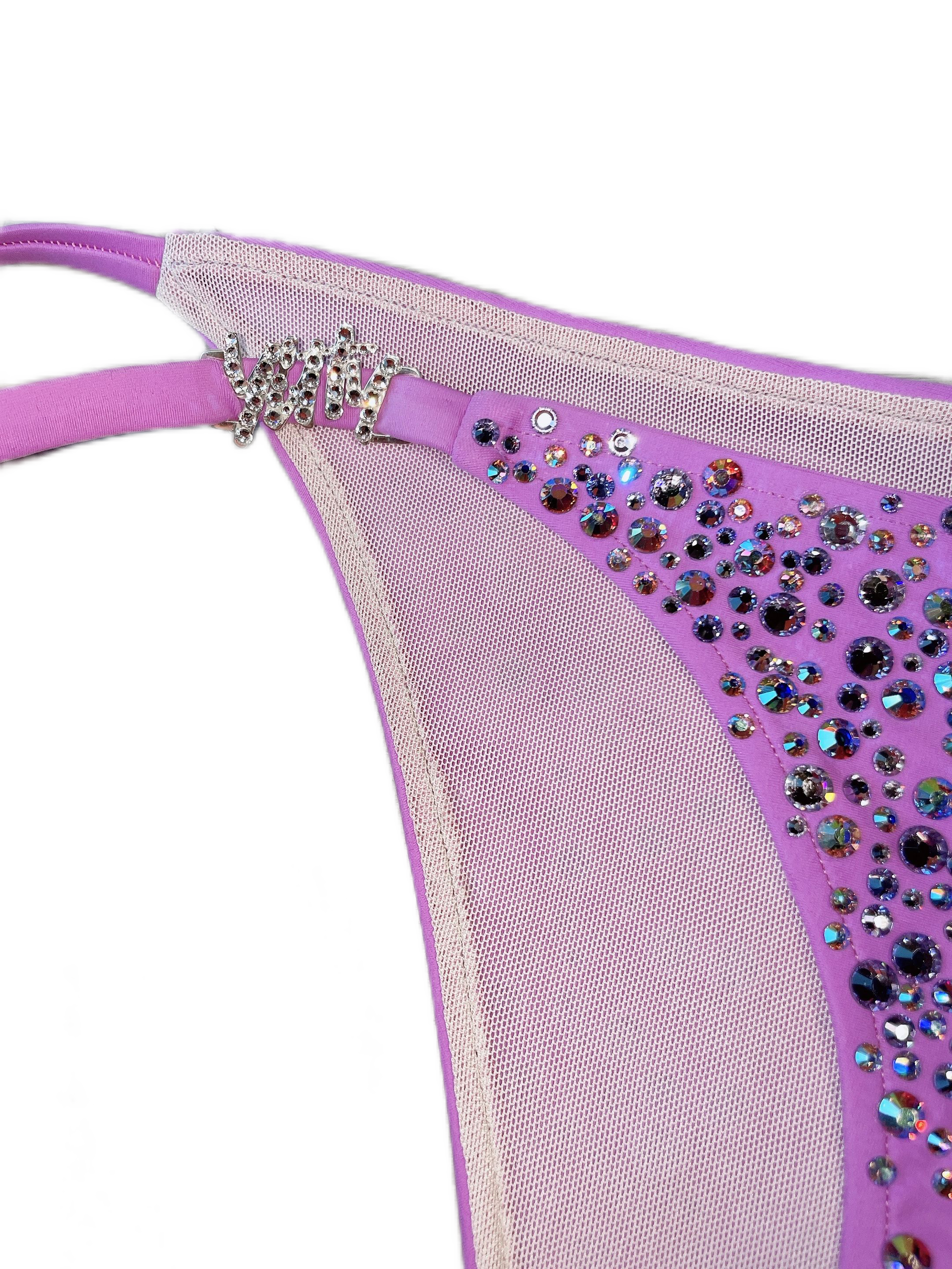 To celebrate Lizzo’s birthday the incredible team at Yitty reached out to A-Morir about collaborating on a custom bikini. We worked with the design team to come up with a workaround, knowing the bikini would be received by our studio in the morning and shipped that same evening. Working with the bikini’s pattern we created a hand patterned transfer sheet so the crystals could be applied and shipped (and water safe!) same day. Scroll down for pictures for close ups of the work and Lizzo’s gorgeous poolside shots!